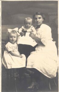 Foto1: Eine feurige junge Christin: Die 19jährige Frieda Bianzano im Jahre 1922 mit meiner damals zweijährigen Schwiegermutter Martha und ihrem Bruder Helmut.